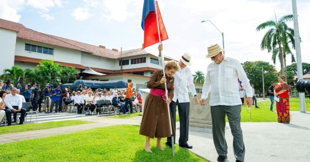 La ceremonia culminó con el tradicional despliegue de banderas nacionales en homenaje a los estudiantes que, en 1958, sorprendieron a las autoridades estadounidenses al colocar 65 banderas panameñas en lugares emblemáticos de la antigua Zona del Canal.